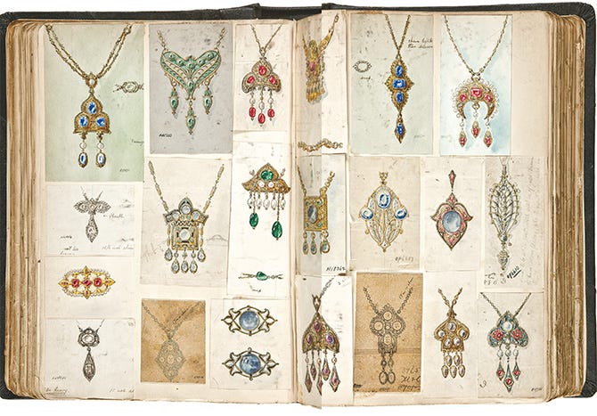 Selected pages of jewelry including several inspired by Islamic design from “Brooches and Pendants, No. 5.” Courtesy of Morse Museum